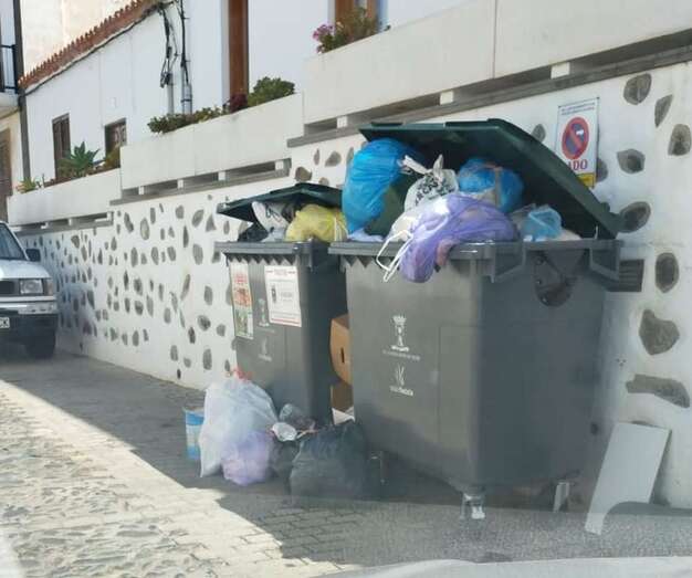 Los recipientes para la recogida de residuos sólidos situados en San Francisco, núcleo histórico de Telde, están a tope. Imagen captada este martes 13 de abril por la tarde (H.R.)