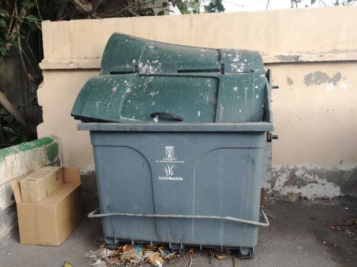 Les mando esta foto de un contenedor en la calle de Raimundo Lulio de La Pardilla sucio y con las tapas y el pedal de apertura estropeados (Vecino de la zona)