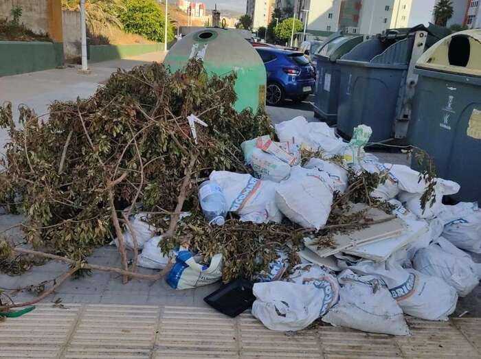 Les muestro una foto de restos de poda y bolsas con escombros que llevan tirados en la calle Manuel Alemán Álamo, en el Valle de Jinámar, varias semanas. Mi pregunta es cuándo lo van a retirar (Carlos).