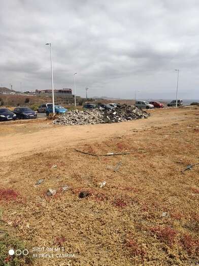 Los restos de las obras de la calle Manuel Alemán Álamo siguen amontonados en los solares próximos a esta vía en el Valle de Jinámar afeando el paisaje de la zona (Carlos).