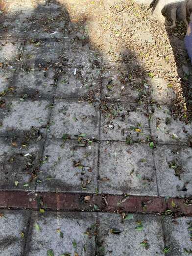 La plaza de La Montañeta de El Calero está llena de hojas caídas de los árboles dando un aspecto de suciedad y de falta de limpieza (Pepita M.)