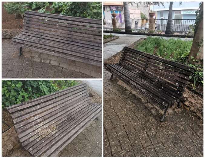 Hola, buenas: por si les interesa les mando fotos del estado de los bancos llenos de cagada de palomas en el parque situado en la calle José Vélez, en Los Llanos de Telde, delante del edificio Bandama y junto a rotonda del Acueducto (Alexis)