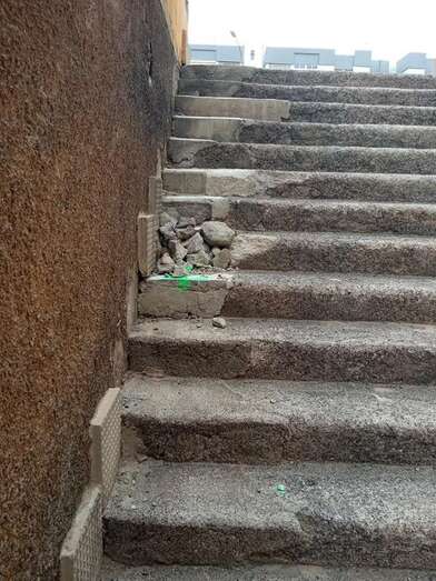 Hemos pedido una pequeña rampa para poder bajar los alimentos con poco esfuerzo y nos dicen que es inviable. Pero si pueden romper los escalones y dejarlos más de una semana sabiendo que está escalera sirve para que los beneficiarios bajen a recoger los alimentos. También se ha reclamado que los pasos de está escalera están deteriorados y que son un peligro para los usuarios. Telde…más de los mismo (Juan Medina, presidente de la AV Solidaridad del Valle).