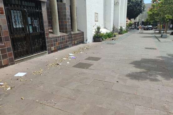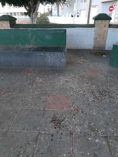 Buenas. Así está la plaza de El Calero y zona infantil. Insalubre, llena de excrementos de palomas. No se pueden usar los bancos y los niños tropiezan dentro del parque por su mal estado. Lleva así bastante tiempo (Vecino de la zona).