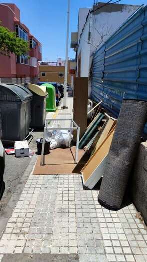 Buenas tardes: Este es el estado que dejan algunos vecinos por llamarlos así la zona de los contenedores. He ido a tirar la basura y el contenedor estaba medio vacío, la gente es más vaga que no abre el portón del contenedor (el pedal lleva roto meses y siguen sin cambiar el contenedor o arreglarlo pero bien que te cobran cada tres meses el impuesto) para depositar las bolsas de basura que las dejan en el suelo y cómo hay gatos por la zona rompen las bolsas y todos los desperdicios desperdigados por la acera y carretera. Esta es mi denuncia, no va contra el Consistorio solo contra el incivismo que cada vez se ve más en Telde, una pena vivir en una sociedad así. Muchas gracias y un saludo (Luismi).