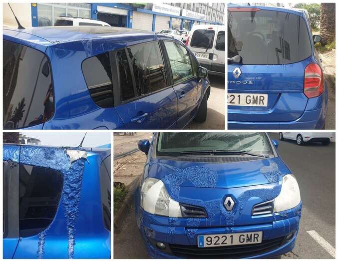 Buenas tardes: Trabajo en el polígono industrial de El Goro y este martes 13 me echaron ácido en el coche por todos los laterales. Lo deje aparcado en la calle Prior Mateo Tello 5 en horario de 8:00 hasta las 13:30. No tengo enemigos. He denunciado el hecho a la Policía y están investigando pero no puede ser que a plena luz del día nadie haya visto nada. Por eso quiero hacer un llamamiento por aquí para ver si alguien vio algo ya que desde la pista también se ve porque es la calle que está en la entrada de El Goro. En la hilera de coches que había solo el mío tenía el ácido y de verdad que temo cada vez que entro y salgo del trabajo (Miriam Umpiérrez Santana).