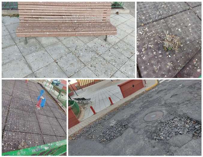 Hola buenas tardes: Quería ver si podemos denunciar una situación a través de su página web. En el barrio de San José de Las Longueras llevamos varios meses sufriendo un abandono de las zonas públicas donde diariamente juegan varios niños, como son el parque, la plaza y la cancha. Le envío algunas imágenes para que pueda ver la cantidad de excrementos tanto de palomas como de perros que hay por toda la plaza en la que no podemos ni traer a los niños a jugar tranquilamente. Además justo en frente de la plaza hay unos grandes baches en la carretera que no es la primera vez que al pasar un coche desprende piedras que saltan a la plaza y que suponen un grave peligro. Le agradecería su ayuda para ver si nos hacen algo de caso y nos limpian aunque sea estas zonas. Gracias de antemano (Patricia)