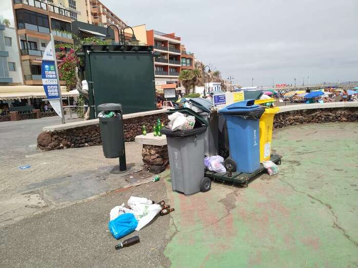 Hola. Buenas tardes. Les envió fotos del estado de las papeleras y cubos para la basura en Melenara, totalmente repletos este sábado (Anselmo Martel).