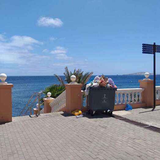 Este es el estado que presentaba el contenedor situado en la avenida costera de Taliarte, en la bajada a la zona de las rocas usada lugar de baño (Pedro).