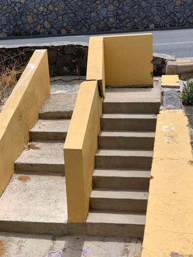 El muro de la escalinata entre las calles de Alfonso XIII y Cura Gordillo presenta una peligrosa grieta que hace temer por su desplome (Vecino de la zona).