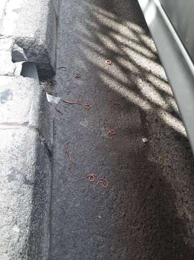 Lombrices saliendo de un desagüe en Los Llanos de Telde