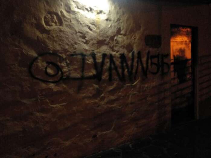 Buenas noches: Los pintores gamberros han adornados los cuartos utilizados por el club de petanca en el parque urbano de San Juan (Miguel).
