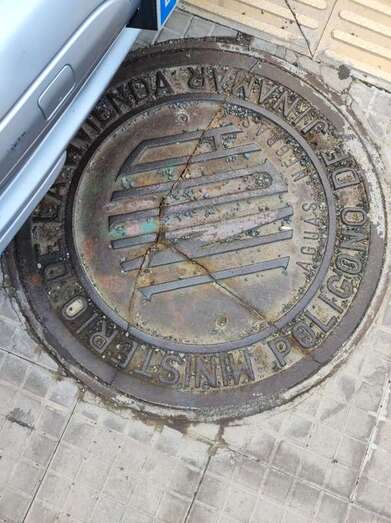 Tapa del alcantarillado rajada en Manuel Alemán Álamo