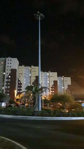 Buenas noches. Esta farola lleva siglos sin encenderse. Cubriría gran parte de esta zona, con más visibilidad para los viandantes, aceras y por supuesto para la seguridad vial. Es en la calle de Manuel Alemán Álamo, frente al número 8, en el Valle de Jinámar (Oliver).