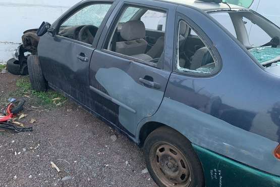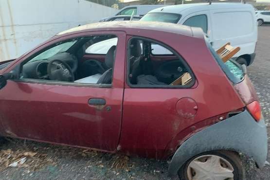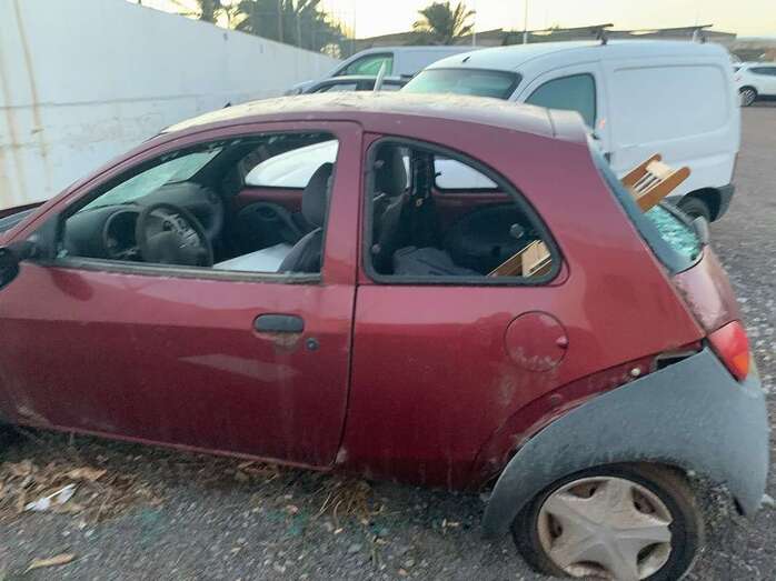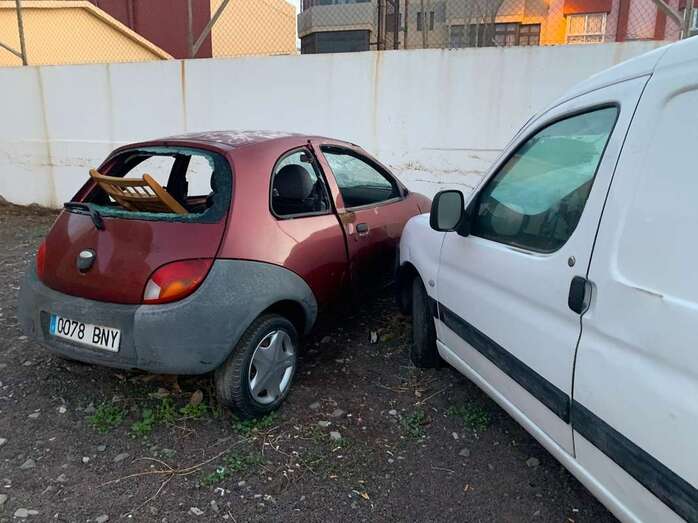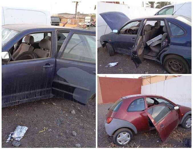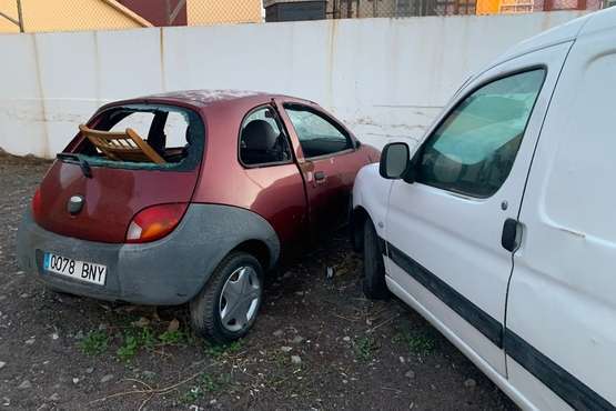 Así aparecieron hoy estos dos coches en el solar usado como aparcamiento en Clavellinas, junto a la cancha deportiva. Lo curiosos es que por la tarde nadie había llamado a la Policía ni esta lo había visto, pese a estar en una zona bastante concurrida (José S.M.).