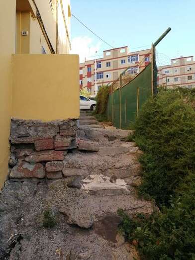 Buenas tardes. Quería comentar, una vez más, que llevamos años quejándonos de una bajada desfavorable, hay viviendas y es un camino bastante transitado por los vecinos y cada vez está peor. Hay un muro al que mucha gente tiene que agarrarse porque las escaleras están bastante mal, tanto a la hora de subir como para bajar, con rajas que están afectando a las entradas de las casas y por no comentar el solar que tenemos en la calle, que viene siendo un vertedero y un nido de ratas. Es en la calle Cielo número 40, edificio con bajada hacia la calle Cura Gordillo número 5, en Lomo de la Herradura. Muchas gracias, un saludo (Claudia).