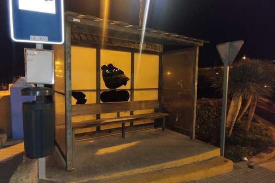 Hola buenas noches. Le envío imágenes de la marquesina de la parada de guaguas de Tara que está destrozada. A ver si el Cabildo puede venir a arreglarla (Vecino de la zona).