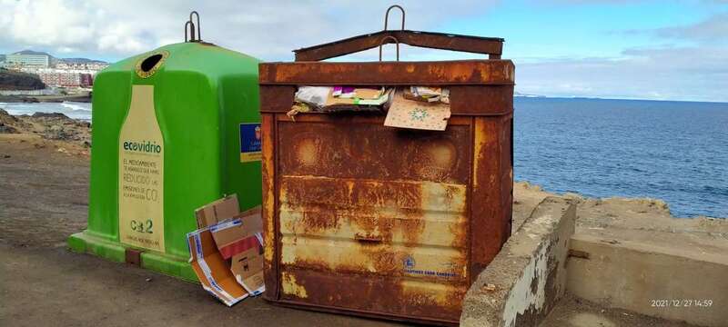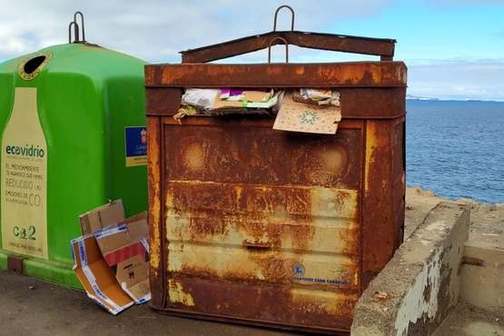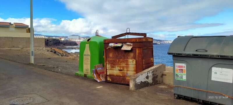 Buenos días. Les envió fotos de un contenedor prácticamente inservible lleno de papel en la calle de Narciso, esquina Bergamota, en La Garita (Morales).