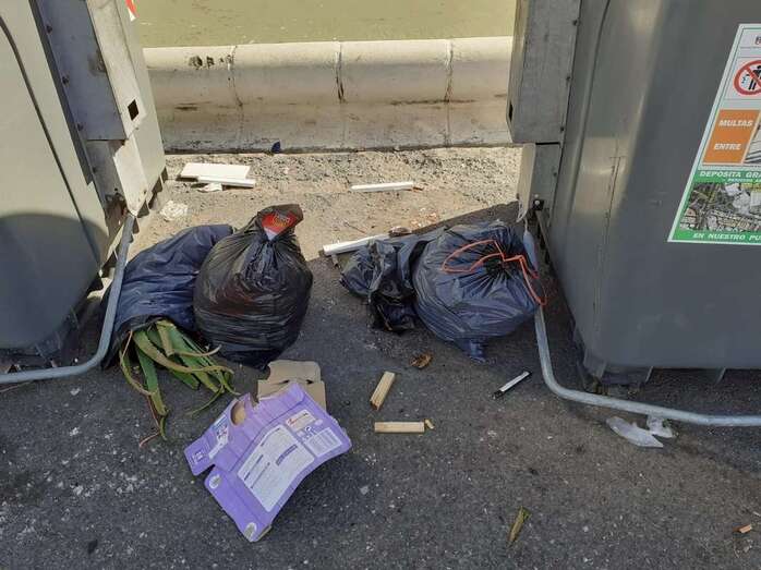 Buenos días. En la entrada a Marpequeña, los pedales de contenedores no funcionan y la basura en el suelo. Es intolerable en tiempos de pandemia tener que levantar las tapas con las manos (Yolanda).