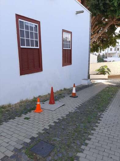Aunque parezca mentira, lo que ve en esta fotodenuncia lleva así dos meses. Alguien se llevó una tapa de arqueta de alumbrado público, se señalizó con unos conos y se olvidaron de reponerla. Esto ocurre en la calle de San Francisco, en el conjunto histórico de Telde (Vecino de la zona)
