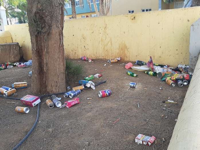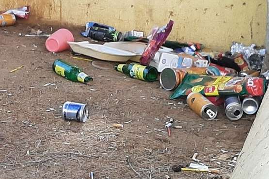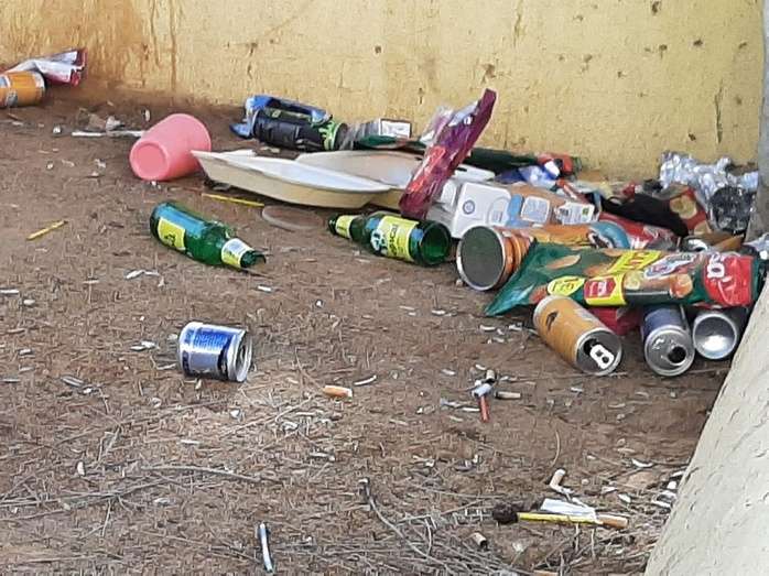 Buenas. Les envío fotos del estado en que se encuentra el parque de La Herradura, lleno de envases tirados por vecinos (Vecino de la zona).
