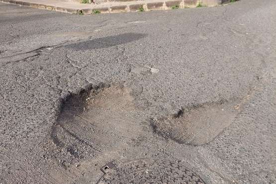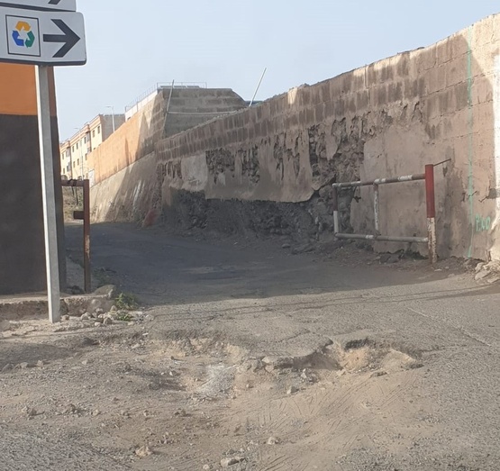 Socavones en la entrada a Las Rubiesas de la carretera de Melenara