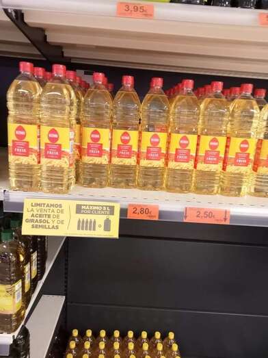 Hola buenos días. Les escribo porque hoy fui al Mercadona del CC Las Terrazas (Jinámar) y creo que se están pasado con el precio del aceite con la excusa de la guerra de Ucrania. Si el conflicto bélico hace un mes un mes que está y ya está escaso el aceite no lo entiendo de verdad. Creo que se están aprovechando de la situación y el Gobierno de Canarias debería hacer algo porque me pregunto adónde vamos a llegar con todo esto (Juan Carlos Casimiro).