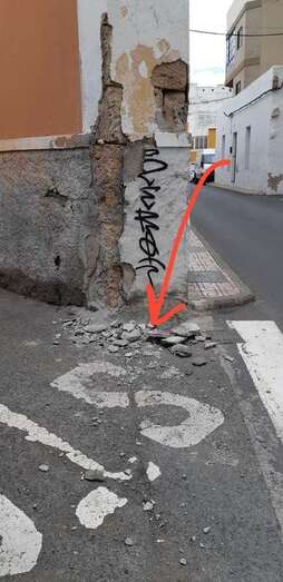 Les mando foto del estado de la esquina de la calle Lepanto a Santo Domingo, en El Cascajo de Los Llanos de Telde, un peligro para los viandantes y vehículos (Vecino de la zona).