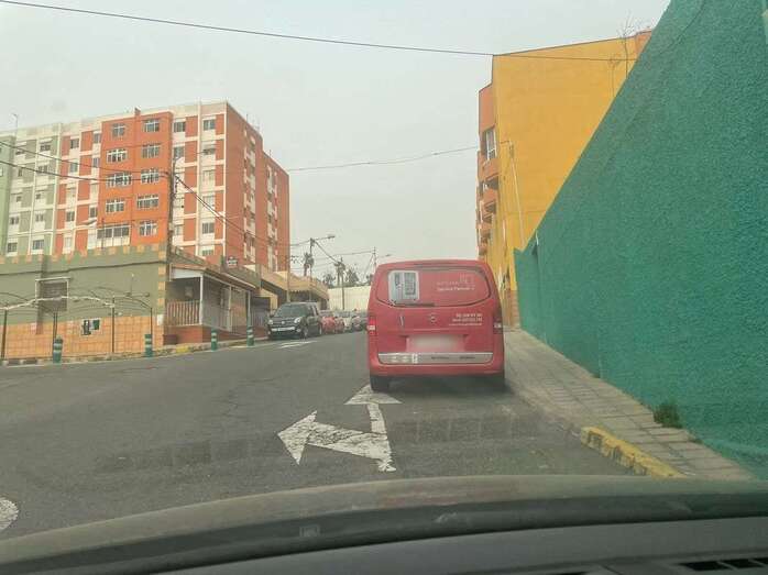 A raíz del poco aparcamiento que hay en Melenara por las obras en diferentes puntos, hay vehículos que literalmente están aparcado en medio de la carretera. Les adjunto fotos para que lo vean. Es en la subida que va hacia Taliarte, Calle Miramar. Si hay un vehículo grande como es el caso no hay visibilidad y como se puede ver la imagen tampoco hay espacio para pasen dos coches. No tardará en pasar algún accidente (Usuario de la playa).