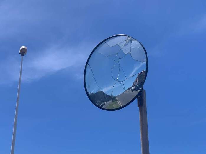 Hola: Dos meses lleva roto el espejo de tráfico que está en la salida de la calle Doce de Octubre a la de Américo Vespucio, en Clavellinas, lo que hace difícil y peligrosa la incorporación a esta vía. Los vecinos esperan una pronta reposición (María G. Calderín).