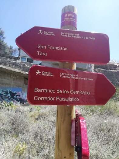Buenos días: Así está la señalética en el Corredor Paisajístico del Barranco Real. Tara está en sentido contrario a San Francisco. Nos gastamos el dinero a la ligera y encima con información errónea (senderista)