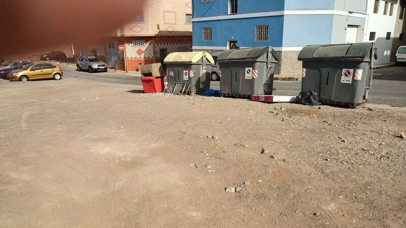 Contenedores junto al campo de fútbol Melenara. Este miércoles se limpió todo y quedó la zona ordenada. Hoy por la mañana aparece trastos y desechos. Así con este incivismo es imposible la convivencia (Vecino de la zona).