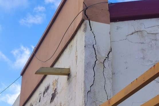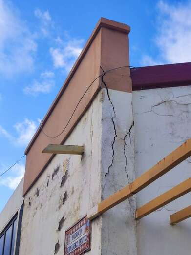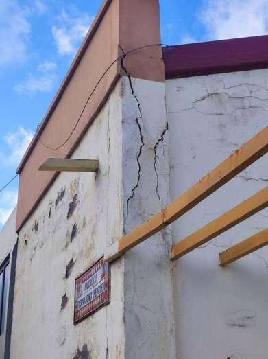 Buenos días: Quisiera llamar la atención sobre el estado de parte del frontis lateral del Polideportivo Paco Artiles de San Juan. Creo que es un peligro como está, con rajas evidentes (Vecino de Telde).