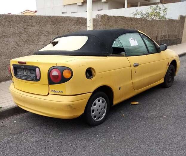 Buenos días: Quiero denunciar que un vehículo Renault Megane, de color amarillo y descapotable, lleva abandonado desde hace más de dos meses en la calle de El Olivo, entre las urbanizaciones de Los Melones y Hoya Pozuelo (Vicente).