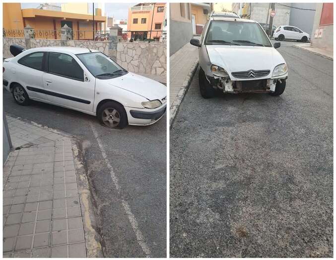 Buenas tardes: Les mando fotos de dos coches abandonados en calles de El Goro, a menos de 20 metros de distancia. Uno puede ser que lleve ya más de un año y medio y el otro, unos seis meses (Vecino de la zona).