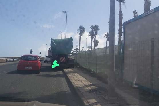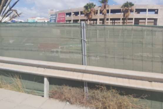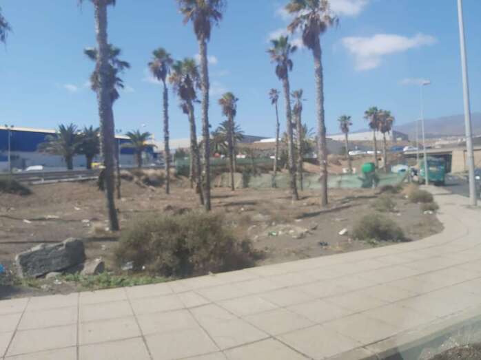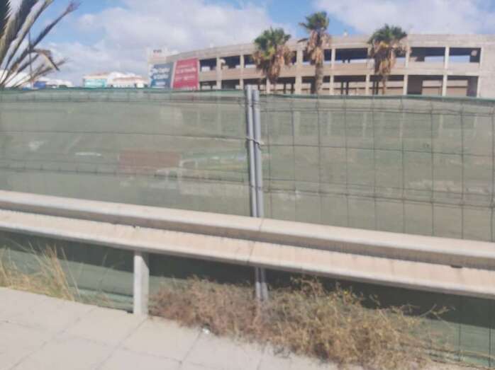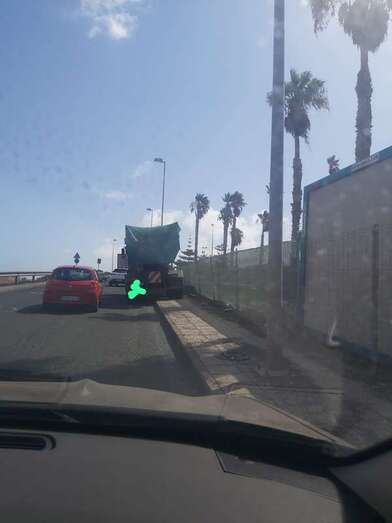 Buenos días: Esto ocurre en la vía que va desde el acceso a la autopista por Las Huesas hacia el vial costero. El pavimento deja mucho que desear y esta zona está desde hace tiempo vallada por una empresa que tiene sus enseres y deja sobre la acera restos de residuos (Celina).