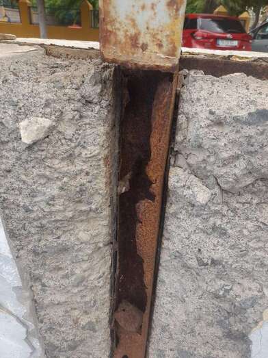 Buenas tardes: Una vez más quiero denunciar el lamentable estado que se encuentra la cancha deportiva de la zona de Eucaliptos I, en el Valle de Jinámar. Las rejas grandes y pesadas están muy deterioradas y pueden dañar gravemente a cualquier persona y más en el caso de niños (Vecino de Jinámar).