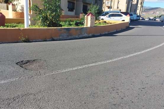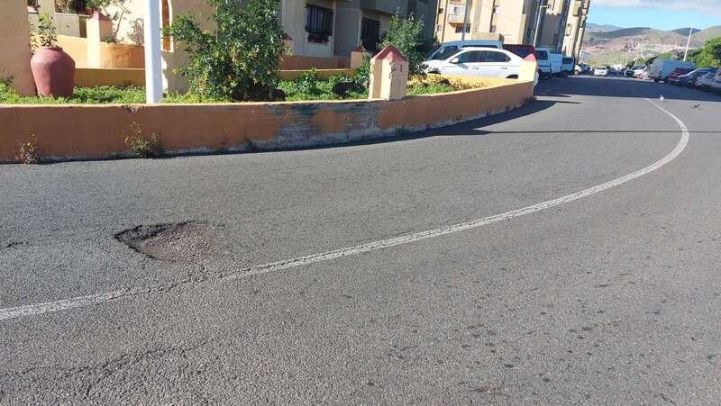 Buenas tardes: Este bache está en Lomo de las Brujas, número 5, y debido a ello me ha causado daños a mi coche. ¿A quién le tengo que reclamar porque el Ayuntamiento no hace caso? La broma me ha costado cara (Isabel)