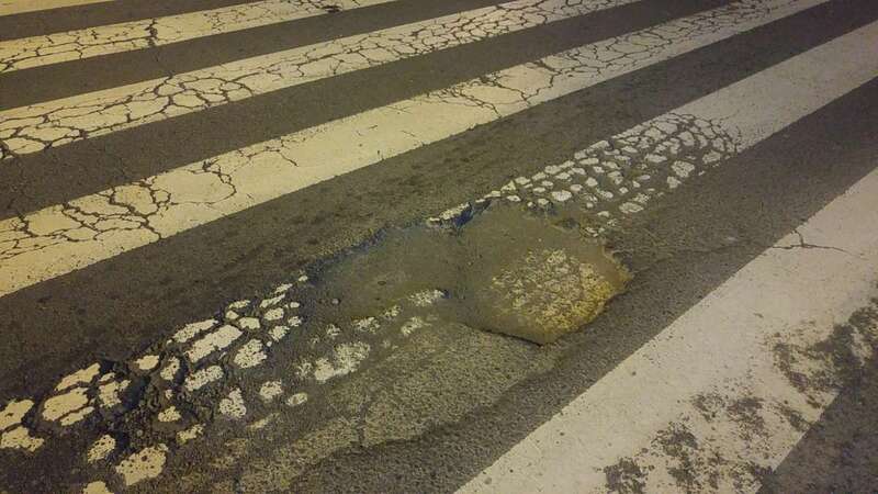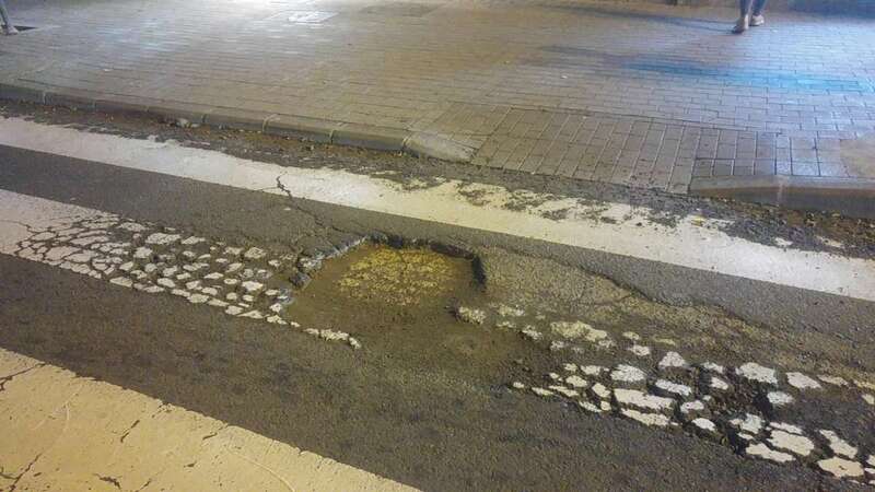 Ha aparecido un nuevo socavón en las carreteras de Telde. El gran bache está justo en el paso de peatón de la Avenida del Cabildo, a la altura del hogar del pensionista. Los peatones tienen que sortearlo y los vehículos pasan por dentro de él sí o sí, pues está justo a la altura de las ruedas del lado derecho. Como es en San Gregorio, lo arreglarán esta semana, seguro (Claudio).