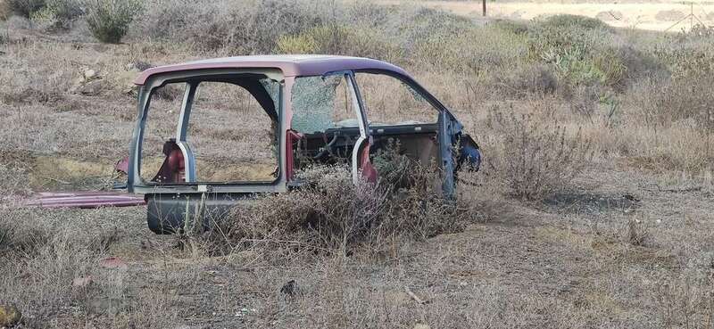Buenas tardes: Quiero denunciar la presencia de un coche abandonado y desguazado en una finca que está detrás de la iglesia de Tara (Vecino de la zona).