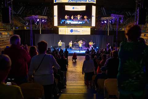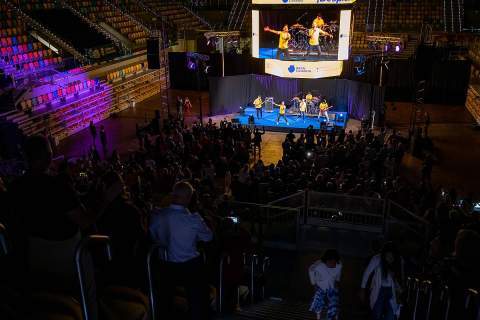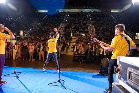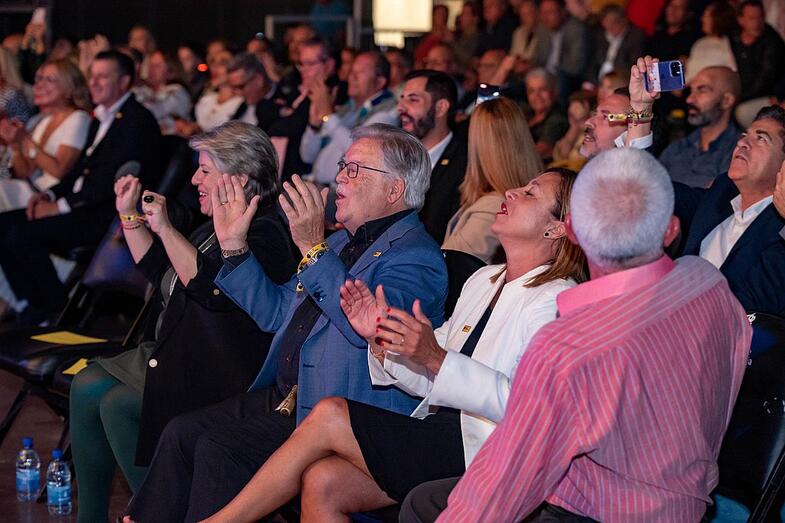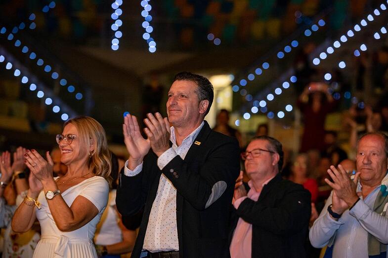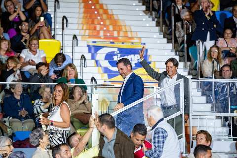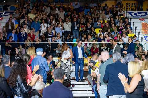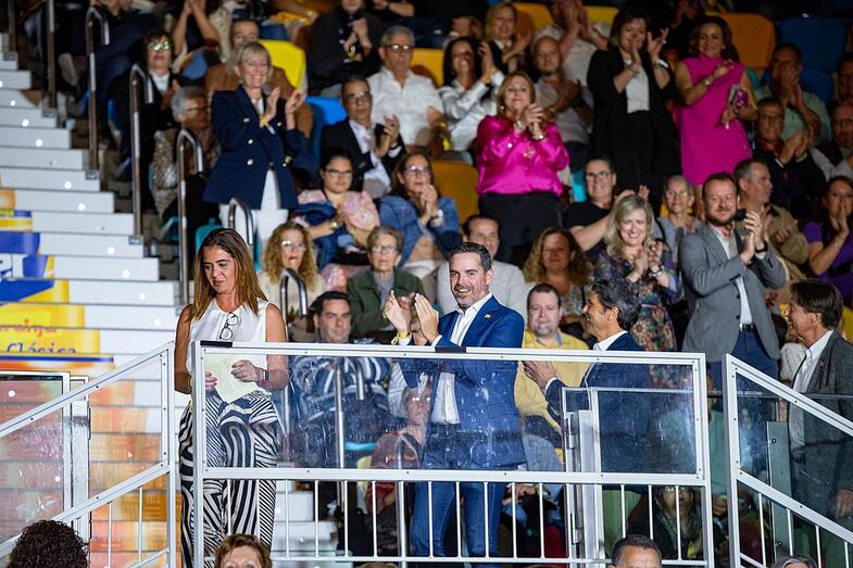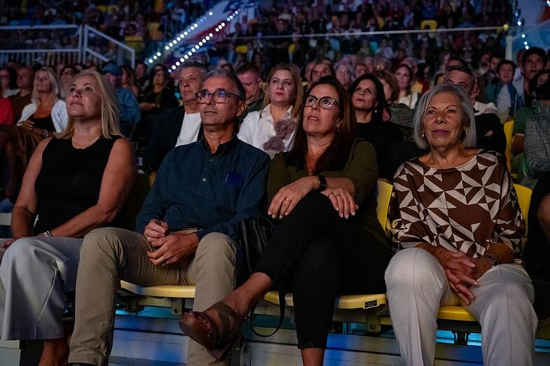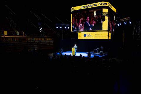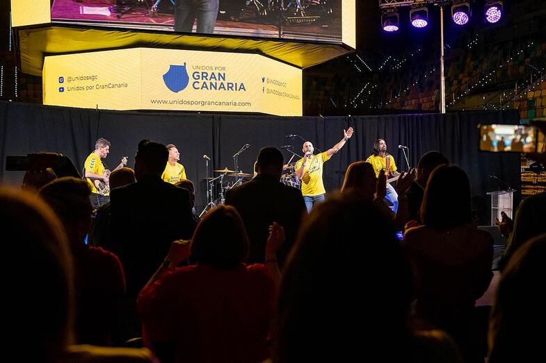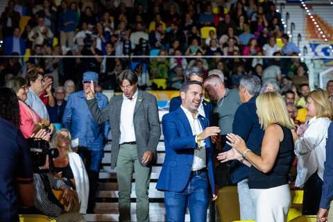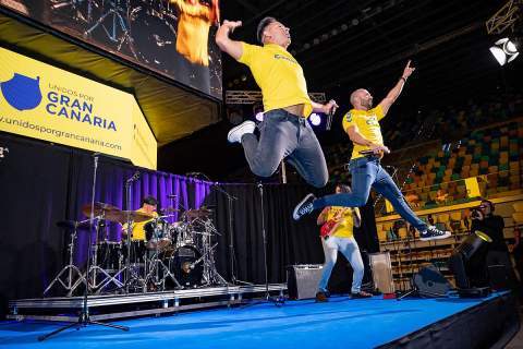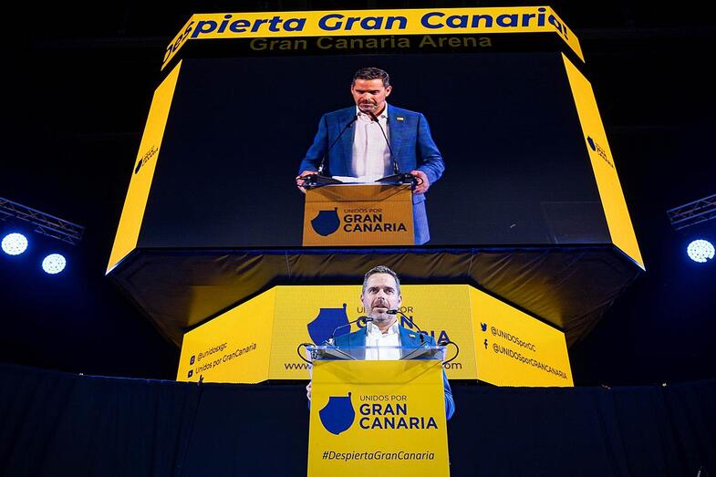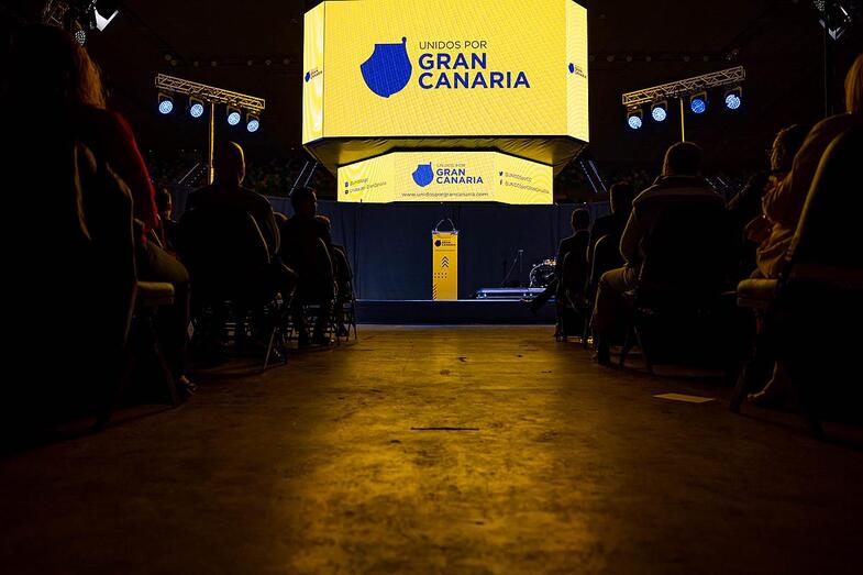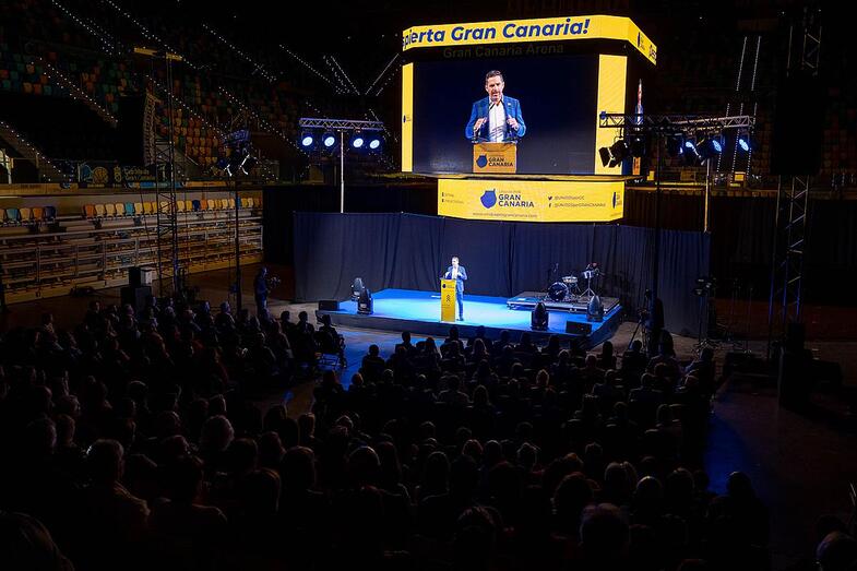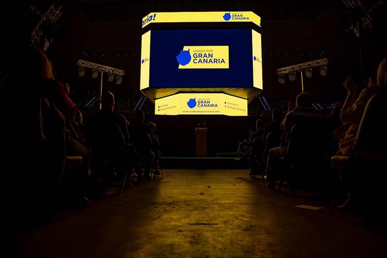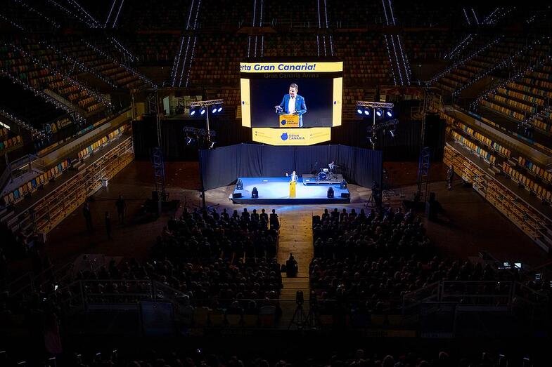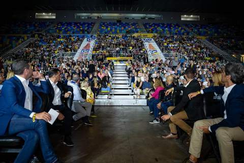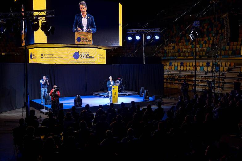 Noche de fiesta para Unidos por Gran Canaria en el Gran Canaria Arena para presentar su lista al Parlamento regional que estará encabezada por Lucas Bravo de Laguna y que lleva a la teldense Guadalupe Santana, de Más por Telde, en el puesto cuarto, fruto del acuerdo político firmado por ambas organizaciones políticas.