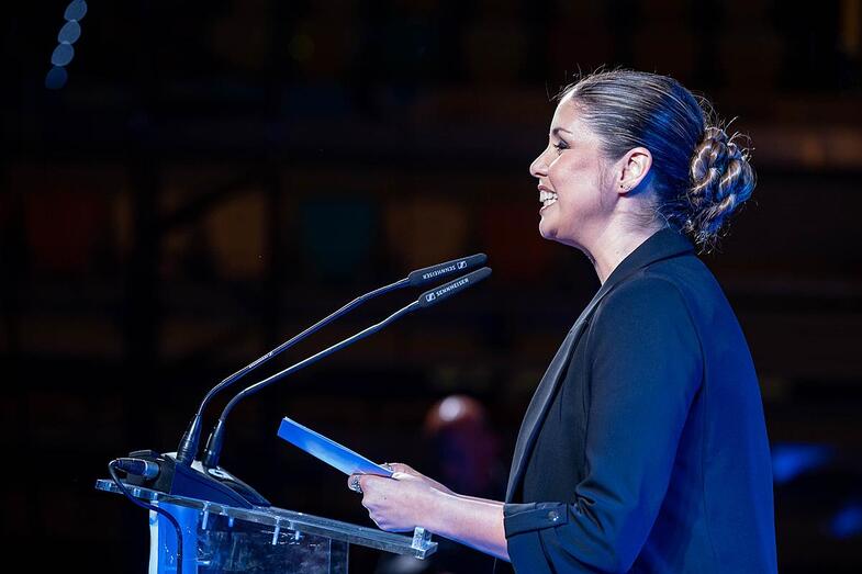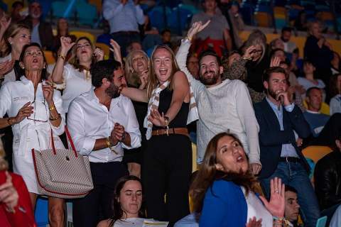 Poco después apareció en escena la conductora de la gala, la cantante grancanaria Cristina Ramos, quien volvió a hacer un alarde de talento, con una entrada a capella que emocionó al público.