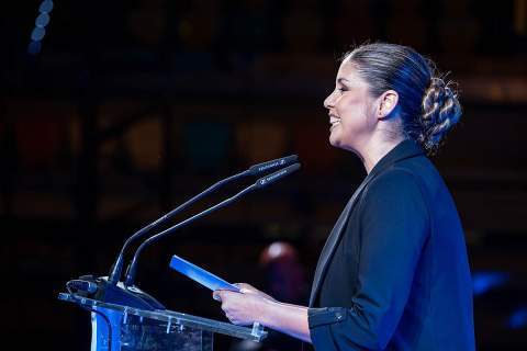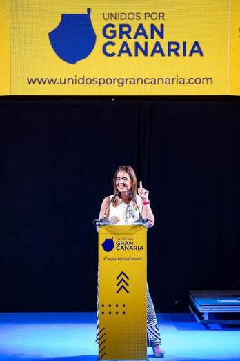 Seguidamente tomó la palabra Elizabeth López, número dos de la lista al Parlamento de Canarias, que hacía su debut en un acto público (recordemos de se trata de una empresaria y ejecutiva recientemente incorporada al proyecto de Unidos por Gran Canaria), y que logró implicar al público con sus apelaciones a la necesidad de recuperar el orgullo de ser grancanarios, manifestando lo incomprensible que resulta que los ciudadanos de esta isla se sientan orgullosos de su barrio, de su municipio, de su región, de su país, de ser europeos, de ser ciudadanos del mundo, pero que, en esa enumeración de enclaves, se olviden de la isla, y nadie presuma de ser de Gran Canaria.