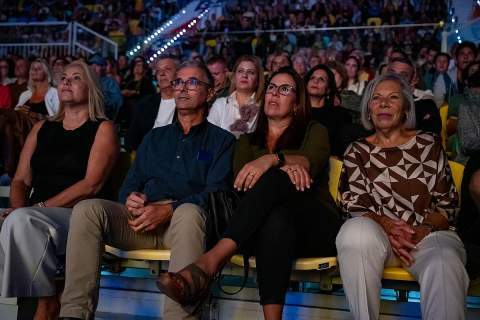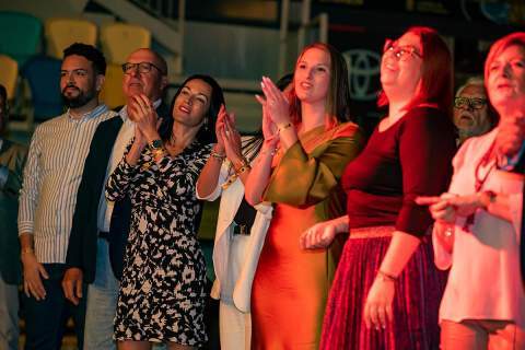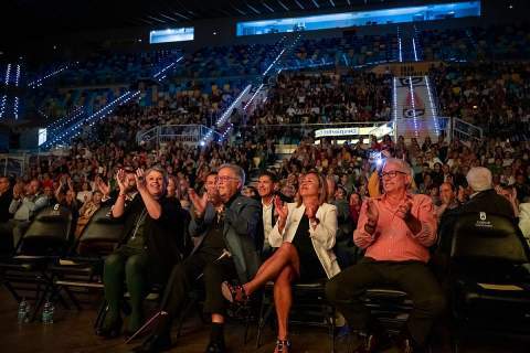 Tras la intervención de Ponce se produjo el momento más emotivo de la velada, cuando alguien se levanta entre el público y empieza a cantar 'Ay mi Gran Canaria', seguido por otra voz, y luego otra, y, así, hasta siete, creando una composición coral que puso el bello de punta y cristalizó los ojos de cuantos asistieron al acto.