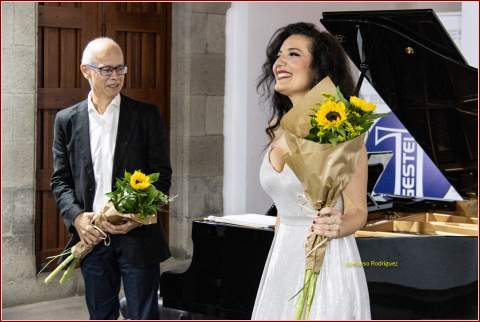 La ermita de San Pedro acogió el pasado viernes el tercer concierto del ciclo ‘Vive la Lírica’ protagonizado por la soprano teldense Eduvigis Monagas y el pianista Rafael Coirini.