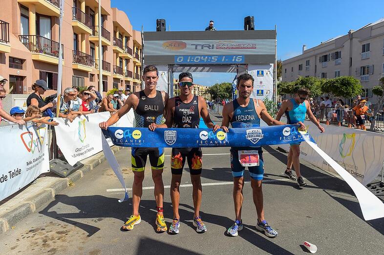 Así. el triunfo en la categoría masculina fue para el colombiano, afincado en Canarias, Andrés Eduardo Díaz, del club de triatlón Diablillos de Rivas, con un tiempo de 59:12. Tan solo siete segundos más tarde, llegó Raúl Lecuona del club Natación Reales (59:19), mientras que su compañero de equipo, Karim Balli, acabó en la tercera plaza (58:49).