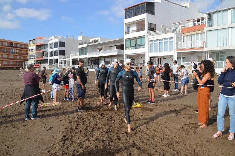 La jornada se completó con las pruebas infantiles en la modalidad de acuatlón, de carácter no competitivo, y que dejaron un gran sabor de boca entre los aficionados que en buen número se dieron cita en el municipio teldense.