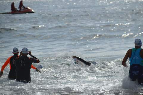 Minutos después de las 10.00 horas, el concejal de Deportes, Diego Ojeda, daba inicio a la prueba deportiva con la salida de los chicos, mientras que cinco minutos después salieron las chicas. Una vez concluya la modalidad sprint, serán los menores los que afronten el acuatlón a las 12 horas.