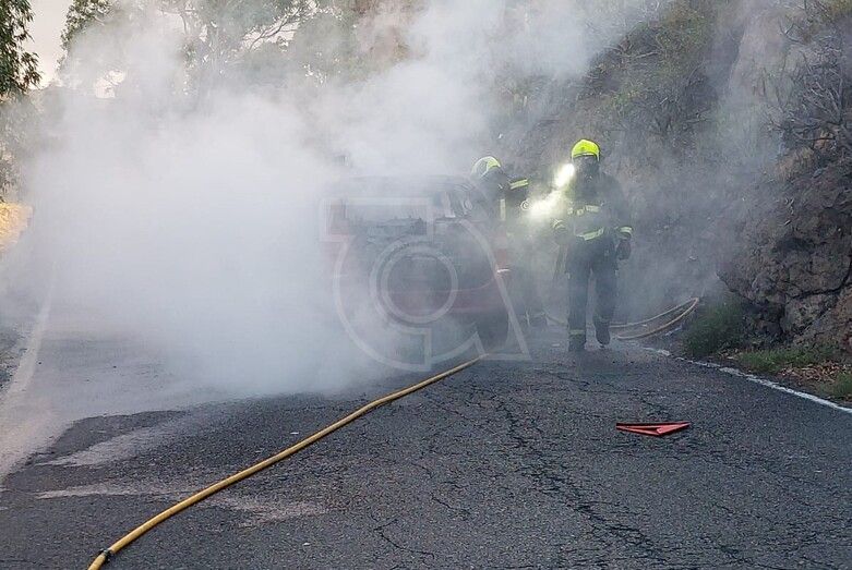 Un turismo quedó totalmente calcinado a última hora de esta tarde tras comenzar a arder cuando circulaba por la carretera que va de Telde a Valsequillo, la GC-41, en dirección subida. El suceso ocurrió en la curva anterior a la entrada al barrio de Tecén.