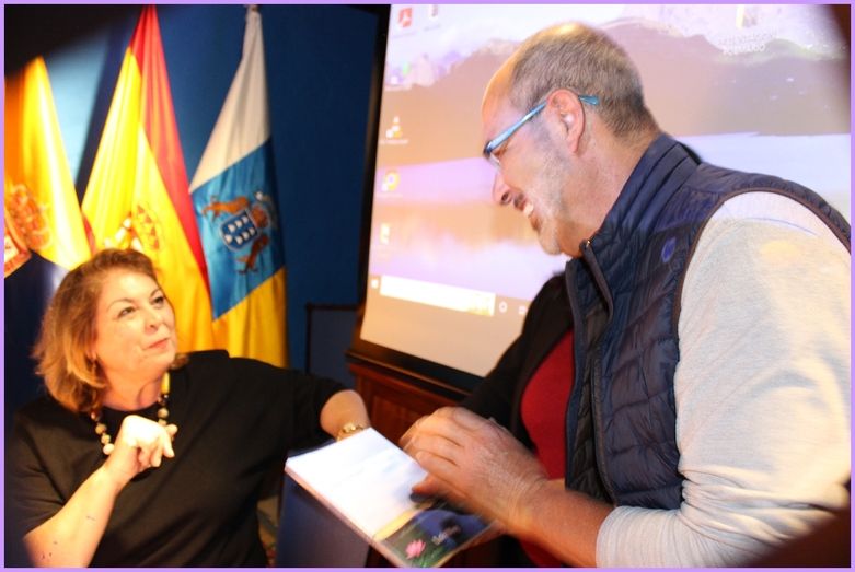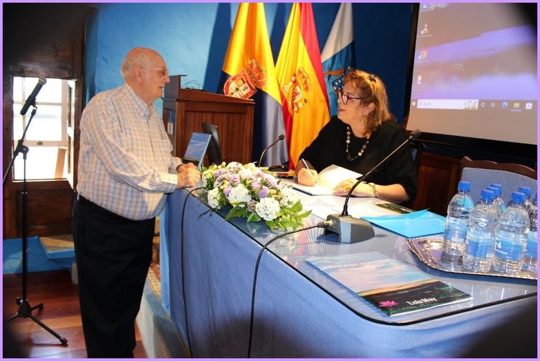 Interviene en formato de video el escritor, poeta teldense, Julio Pérez Tejera, cuya asistencia estaba programada, pero por causas de convalecencia se vio imposibilitado y previas disculpas por la ausencia, expresa en sus palabras siempre sosegadas, con el tono justo medido en armonía y cuidada oratoria, plena de humanidades desde el propio discurso dedicado a la obra del que firma el epilogo, en la semblanza de su autora hasta las citas bien documentadas que nos llaman a establecer una documentada y comparativa relación de lo escrito, leído, sentido y aplicado a la vida con la idea de animarnos a leer el presente y futuro de esta nueva obra de Lola May.
